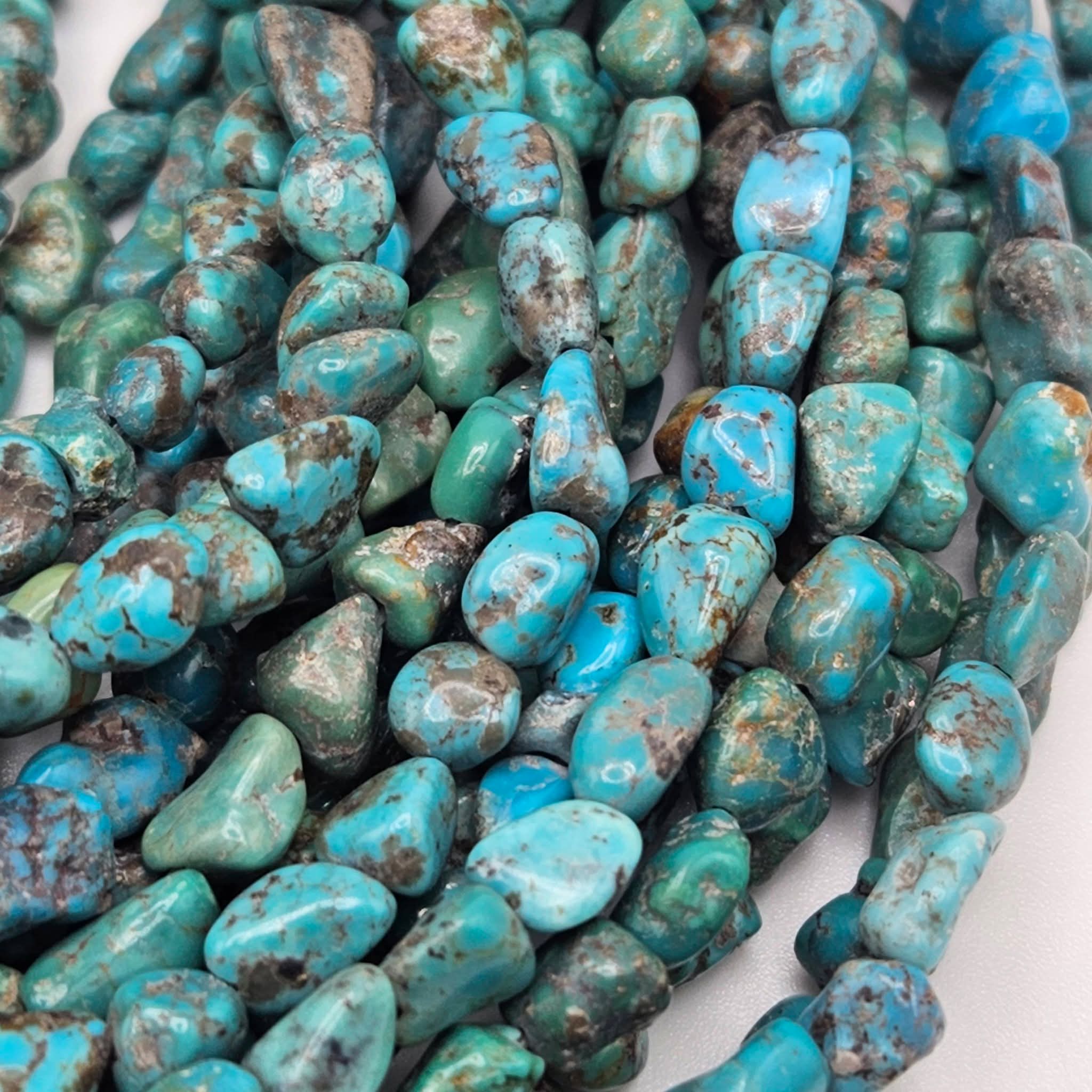 Genuine Blue Turquoise Nugget Beads 6x5mm 16" Strand | Brown & Black Matrix